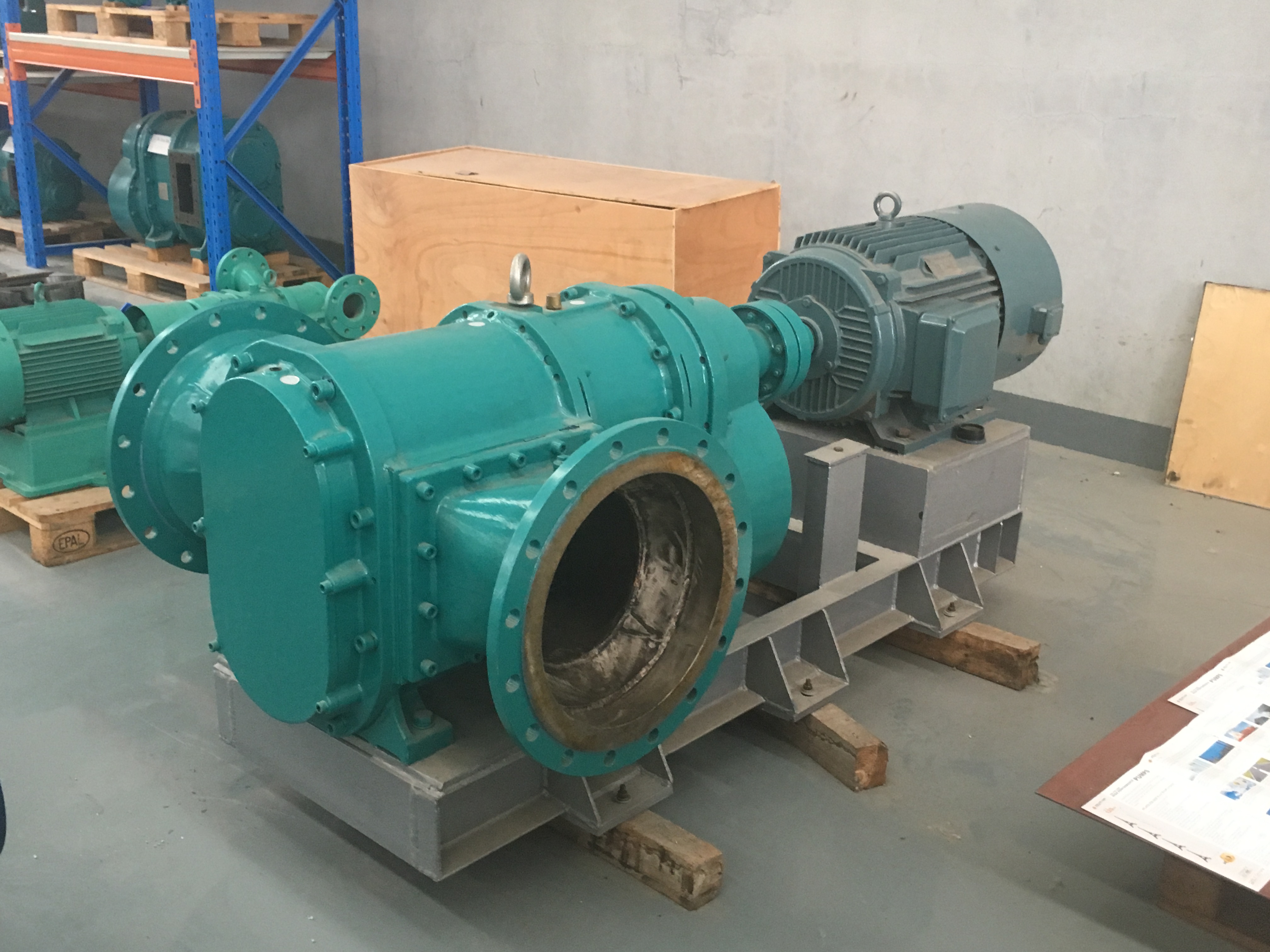 在板框進(jìn)泥過程中,板框系統(tǒng)內(nèi)的壓力由低到高變化,流量相應(yīng)由大到小變化。原系統(tǒng)采用兩臺可變頻的螺桿泵進(jìn)行污泥輸送,泵效率低,達(dá)不到板框進(jìn)泥工藝要求,脫水系統(tǒng)無法正常運(yùn)行。